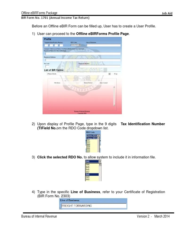 Bureau of internal revenue job aid for the use of offline ebirforms package contact. The offline ebirforms package is a tax preparation software that allows taxpayers and atas to accomplish or fill up tax forms offline. This refers to the infrastructure that accepts, processes, and stores tax returns submitted online. The electronic bureau of internal revenue forms (ebirforms) was developed primarily. How to sign up online ebirforms.